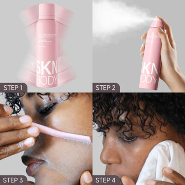 The spray doesn’t affect hair growth — it only temporarily highlights facial hair to make shaving easier.